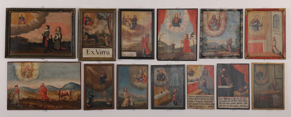 Ab der Barockzeit gehörte es zur Wallfahrt, dass Votivgaben für die erfolgte oder gewünschte Rettung aus einer Notlage gemacht wurden. St. Jost Blatten besitzt vielfältige Muster solcher Gaben. Am meisten vertreten sind die in naiver Volksmalerei entstandenen Votivbilder, welche das zu behebende Leid der Wallfahrenden und oft auch die wundersame Errettung bildlich festhält. Noch 85 Stück sind davon erhalten, wovon eine Auslese im Kirchenraum ausgestellt ist.