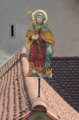 Jost - französisch Josse - wurde im Jahre 602 in der Bretagne geboren, als zweiter Sohn des dortigen Königs. Er genoss eine umfassende Ausbildung in einem Kloster. Als sein älterer Bruder als Nachfolger seines Vaters versagte, war die Thronfolge an ihm. Jost verzichtete auf Krone, Macht und Hofleben. Er wurde Priester und später Eremit und Ratgeber zahlreicher Leute. Laut der Legende bewirkte er mehrere Wunder, wurde vom Pabst geehrt und galt als Heiliger, als er 669 in dem nach ihm benannten Ort St.Josse-sur-Mer am Pas de Calis starb, wo er ein Kloster gestiftet hatte. Nach seinem Tod setzten Pilgerreisen an sein Grab ein, es entstanden aber auch viele ihm geweihte Kapellen und Kirchen in ganz Europa, die ihrerseits Pilgerorte wurden wie z.B. St. Jost zu Blatten.