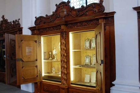 In der Sakristei befindet sich die Paramentenausstellung. Die originalen barocken Schränke in den Mauernischen hüten den in St. Urban verbliebenen Teil des Kirchenschatzes und der liturgischen Kleidung. Die Ausstellung ist für Gruppen auf innerhalb von Führungen oder nach Voranmeldung auf Anfrage möglich.
